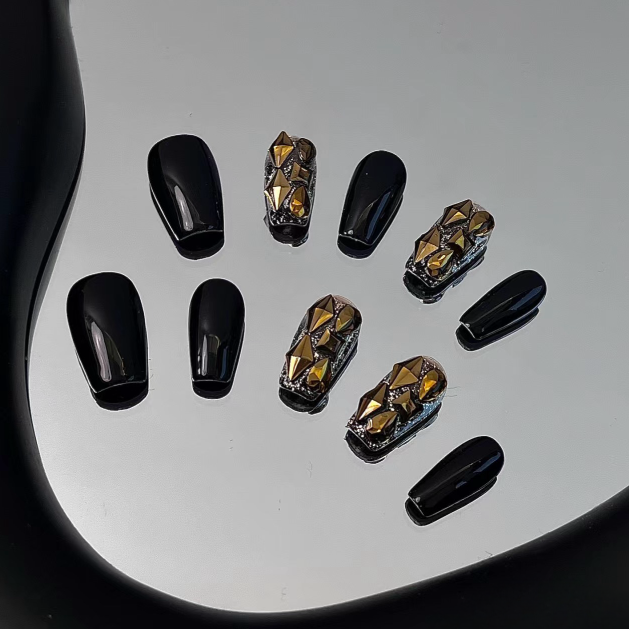 Sleek Black Canvas: The wearable armor showcases a chic black base, providing a sophisticated backdrop that enhances the brilliance of the dazzling yellow gems.